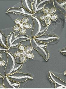 Шитье белое с золотой нитью "Ромашка крупная" 8см уп.15 ярд (цена 1 ярд 46.7 р)