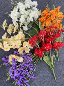 Букет пластм цветочков с золотым мерцающим напылением 7гр 37см