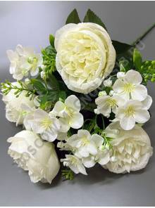 АКЦИЯ Москва Букет ассорти с бутонами роз гортензией и гипсоф. 18гр 34см (роз крас сир бел чай)